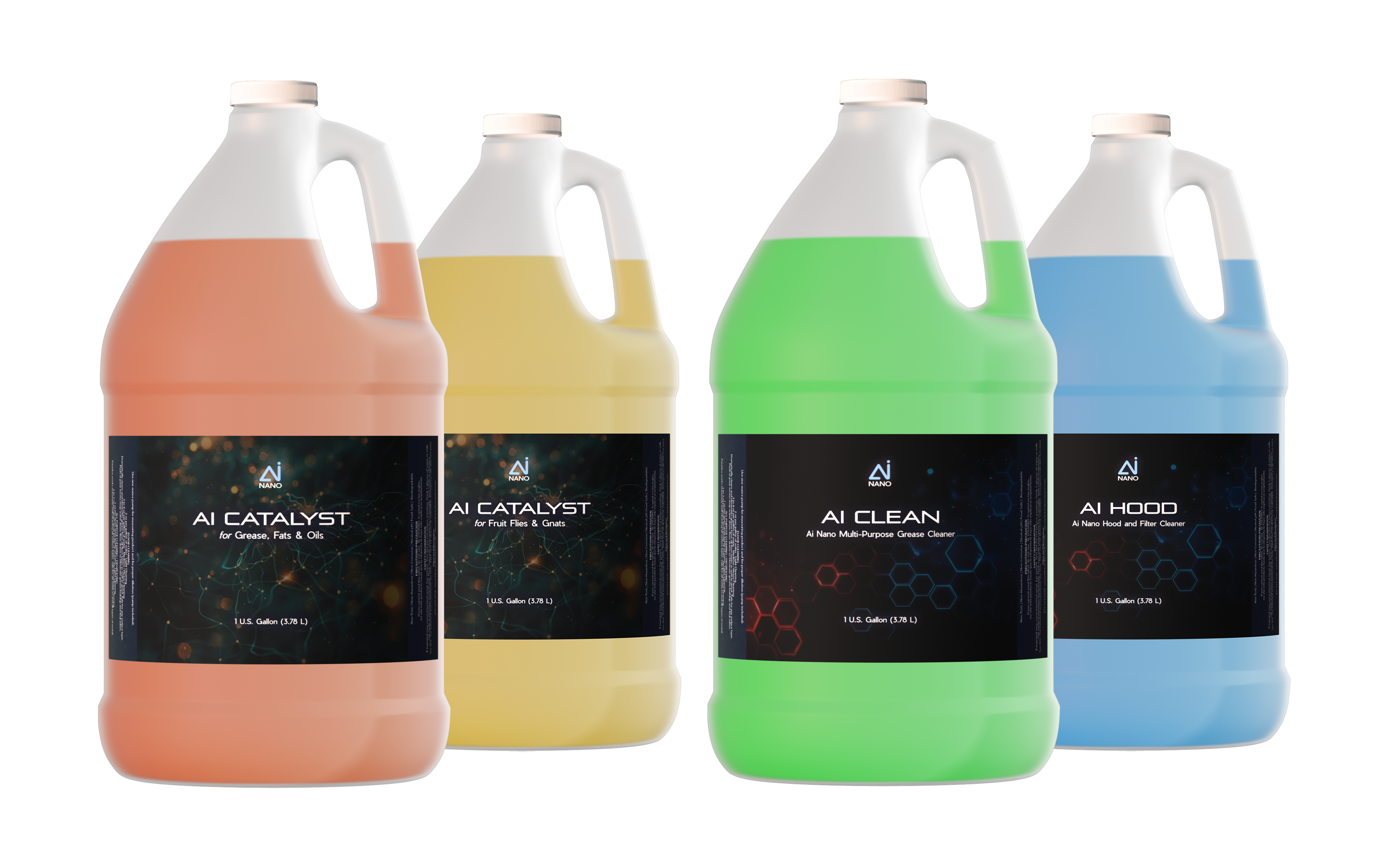 AI Catalysts - These have the full capacities of the AI Nano's strength and technologies of the AI Cleaners. They are built to be added into the customers' cleaners, such as in a mop bucket or quart spray bottles.